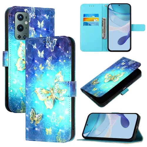 Funda de Cuero para OnePlus 9 Pro con Tapa Horizontal y Pintura 3D (Mariposa Dorada)