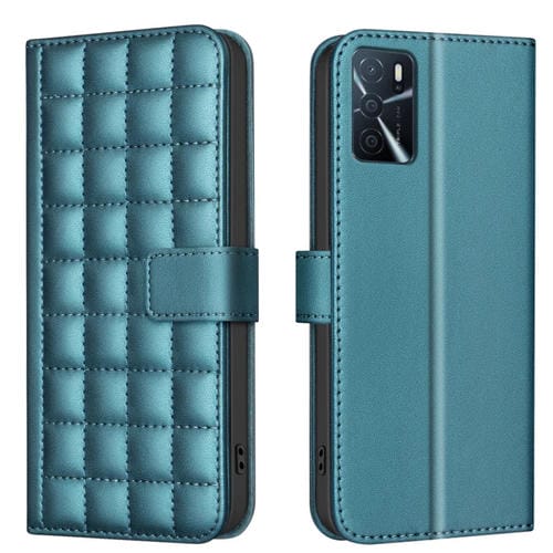 Para Oppo A16 / A16S / A54S / A55 / A54 Funda de Cuero con Textura Cuadrada (Verde)