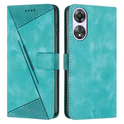 Para Oppo A58 / A78 Dream Triangle Funda de Cuero para Teléfono con Cordón Largo (Verde)