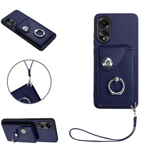 Para Oppo A78 4G Global Organ Card Bag Ring Holder Pu Funda para Teléfono con Cordón (Azul)