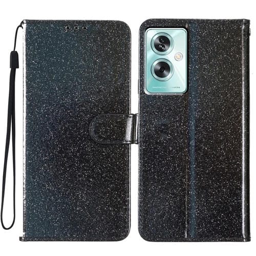 Para Oppo A79 5G / A2 5G Funda de Cuero con Tapa En Polvo con Purpurina (Negro)