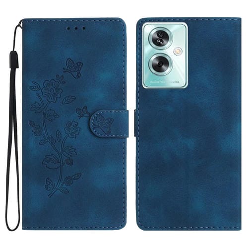 Para Oppo A79 5G Funda de Teléfono de Cuero con Patrón de Estampado de Mariposa y Flor (Azul)