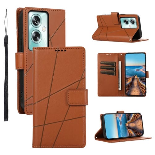 Para Oppo A79 5G Pu Funda de Teléfono con Línea En Relieve con Textura de Cuero Genuino (Marrón)