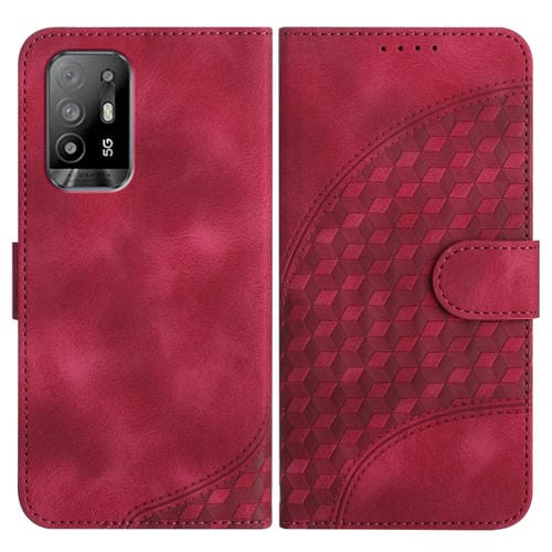 Para Oppo A94 5G / F19 Pro / F19 Pro + 5G / A94 4G Yx0060 Funda de Cuero para Teléfono con Relieve y Cabeza de Elefante con Cordón (Rojo Rosa)