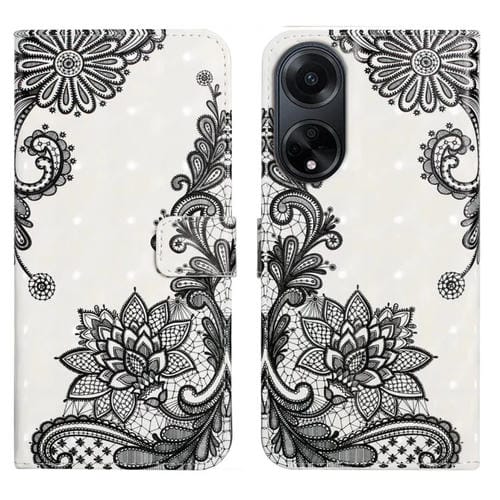 Para Oppo A98 5G Funda de Teléfono de Cuero con Dibujo 3D En Relieve al Óleo (Flor de Encaje)