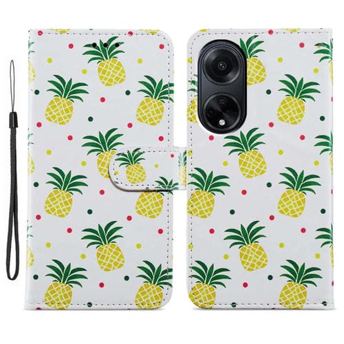 Para Oppo A98 Funda de Teléfono de Cuero con Tapa Horizontal con Patrón Pintado (Piña)