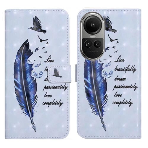 Para Oppo Reno10 5G / Reno10 Pro 5G Funda de Cuero para Teléfono con Dibujo 3D En Relieve de Aceite Global (Pluma Azul)