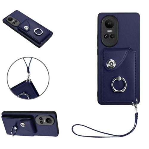 Para Oppo Reno10 / Reno10 Pro Global Organ Card Bag Anillo Titular Pu Funda para Teléfono con Cordón (Azul)