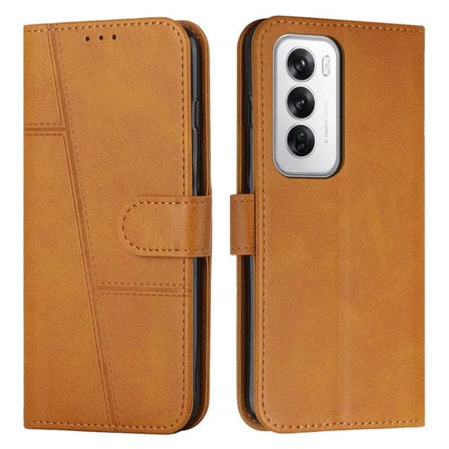 Para Oppo Reno12 5G Funda de Teléfono de Cuero con Hebilla y Textura de Pantorrilla con Costura Global (Amarillo)