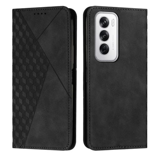 Para Oppo Reno12 5G Global Diamond Splicing Skin Feel Funda de Teléfono de Cuero Magnético (Negro)