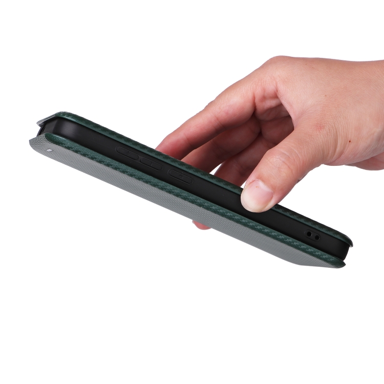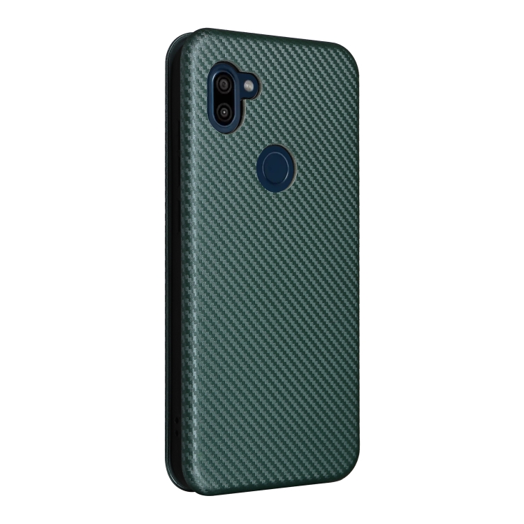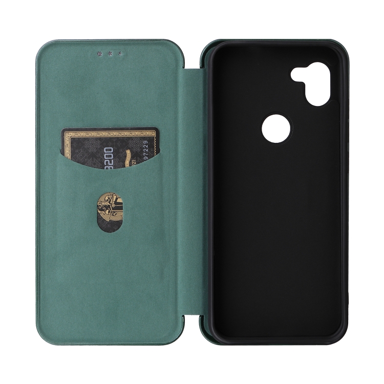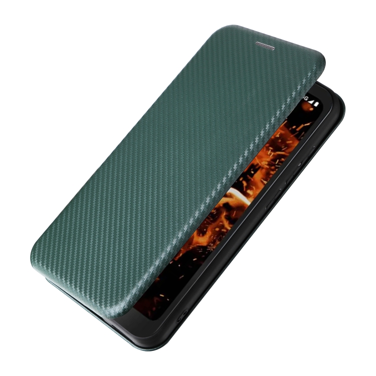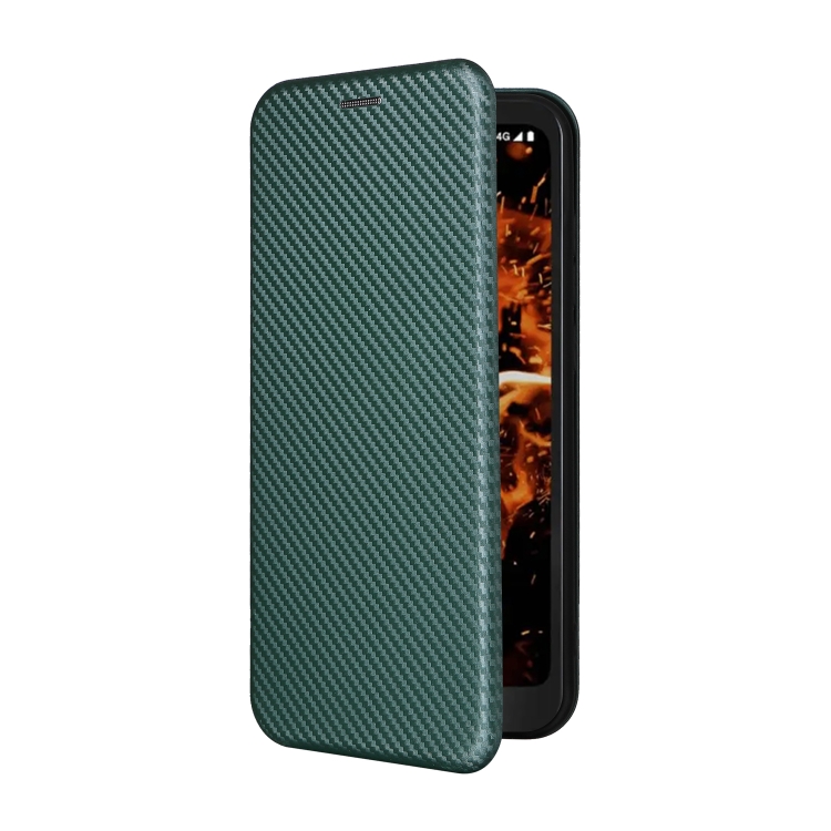 Funda de Cuero con Tapa para Orbic Fun + 4G con Textura de Fibra de Carbono (Verde)
