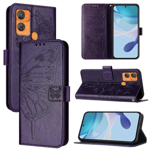 Funda para Oukitel C33 de Cuero con Mariposa en Relieve (Púrpura Oscuro)