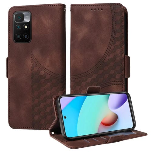 Para Redmi 10 2022 Funda para Teléfono de Cuero Estrellado con Rombos En Relieve (Marrón)