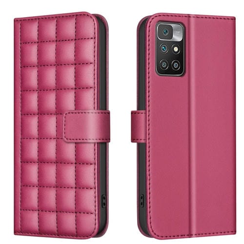 Para Redmi 10 2022 / Note 11 4G Funda de Cuero para Teléfono con Textura Cuadrada (Rojo)