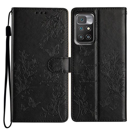 Para Redmi 10 Funda de Cuero para Teléfono con Mariposas y Flores (Negro)