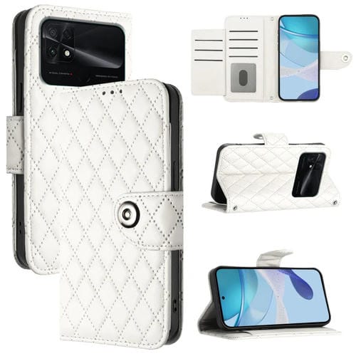 Para Redmi 10C / Redmi 10 2022 India Funda para Teléfono con Tapa de Cuero con Textura Rómbica y Cordón (Blanco)