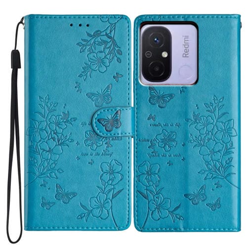 Para Redmi 12C Funda de Cuero para Teléfono con Mariposas y Flores (Azul)