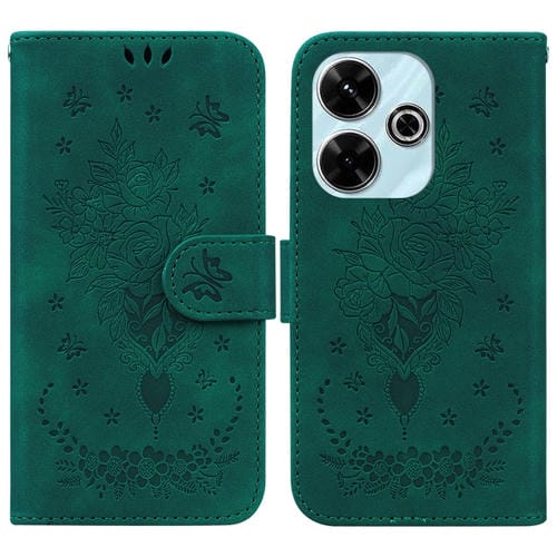 Para Redmi 13 4G Butterfly Rose Funda de Cuero para Teléfono En Relieve (Verde)