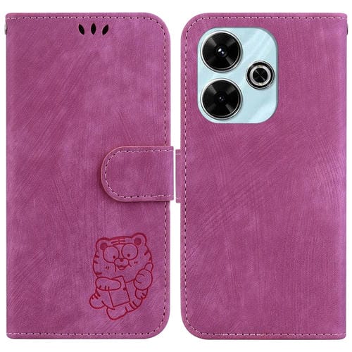 Para Redmi 13 4G Funda de Cuero con Relieve Little Tiger (Rojo Rosa)