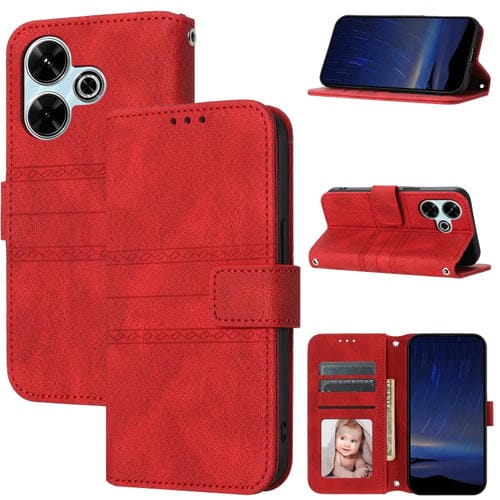 Para Redmi 13 4G Funda de Cuero con Sensación de Piel y Rayas En Relieve (Rojo)
