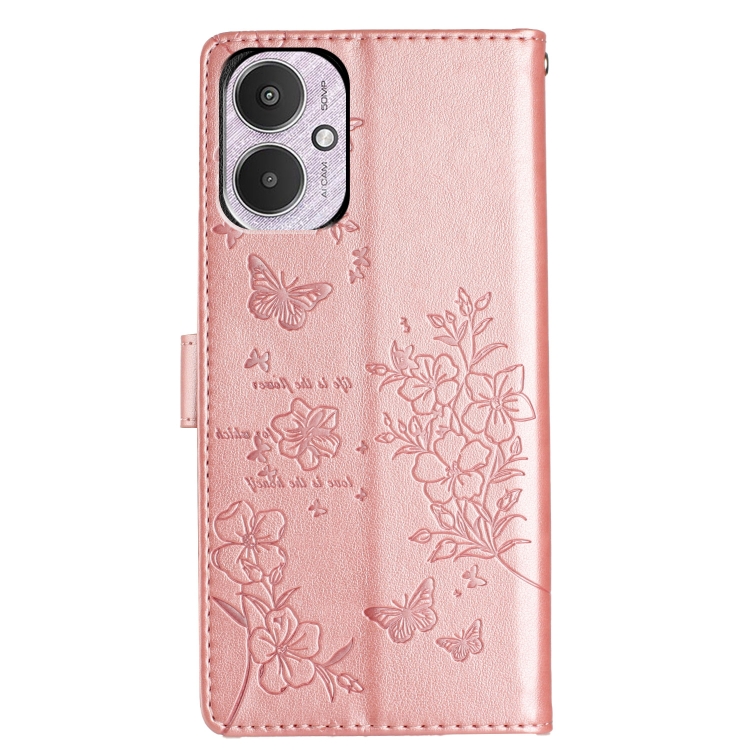 Para Redmi 13C 4G Funda de Cuero para Teléfono con Mariposas y Flores (Oro Rosa)