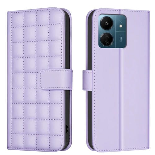 Para Redmi 13C Funda de Cuero con Textura Cuadrada (Púrpura)