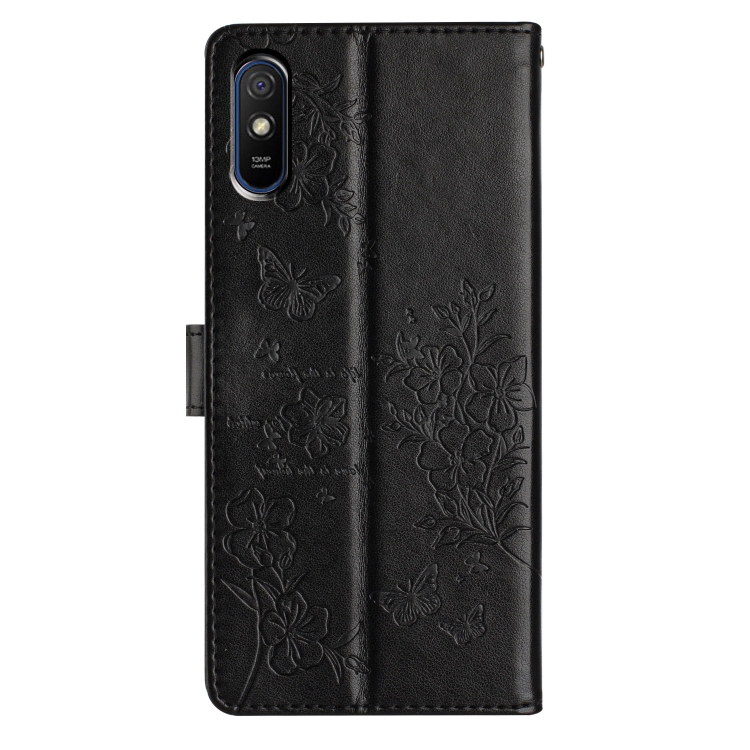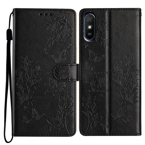 Para Redmi 9A Funda de Cuero para Teléfono con Mariposas y Flores (Negro)