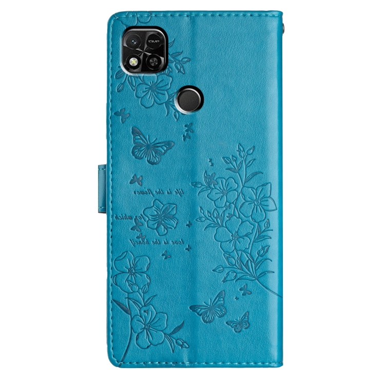 Para Redmi 9C Funda de Cuero para Teléfono con Mariposas y Flores (Azul)