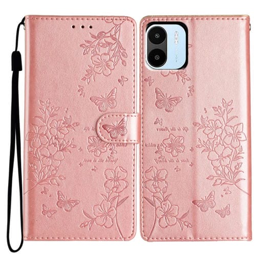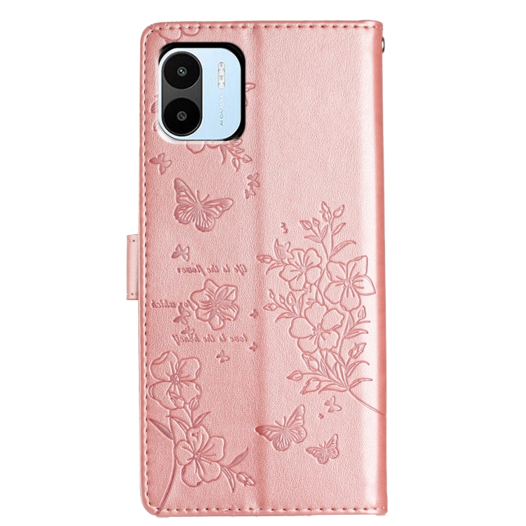 Para Redmi A1 Funda de Cuero para Teléfono con Mariposas y Flores (Oro Rosa)
