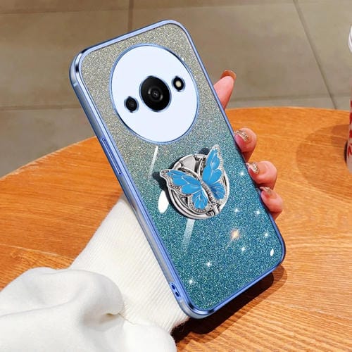 Para Redmi A3 Funda para Teléfono de TPU con Soporte de Mariposa con Brillo Degradado Plateado (Azul Sierra)