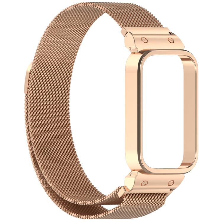 Para Redmi Band 2 / Xiaomi Smart Band 8 Active xDfind Watch Frame con correa de metal magnética Milanesa integrada (oro rosa)