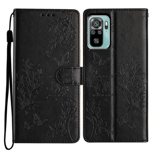 Para Redmi Note 10 4G Funda de Cuero para Teléfono con Mariposas y Flores (Negro)