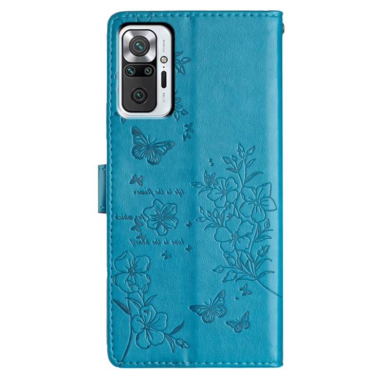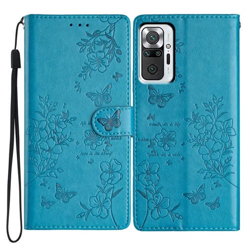 Para Redmi Note 10 Pro Funda de Cuero para Teléfono con Mariposas y Flores (Azul)