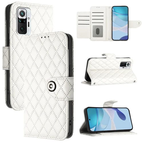 Para Redmi Note 10 Pro / Note 10 Pro Max Funda para Teléfono de Cuero con Tapa con Textura Rómbica y Cordón (Blanco)