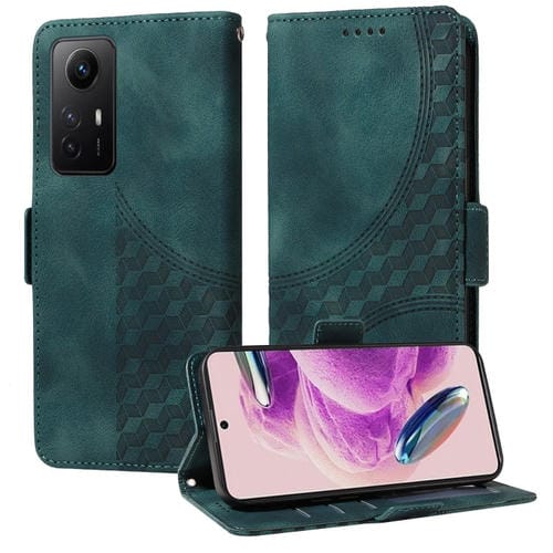 Para Redmi Note 12S 4G Funda para Teléfono de Cuero Estrellado con Rombo En Relieve Global (Verde)