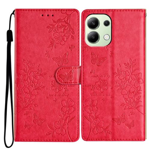 Para Redmi Note 13 4G Funda de Cuero para Teléfono con Mariposas y Flores (Rojo)