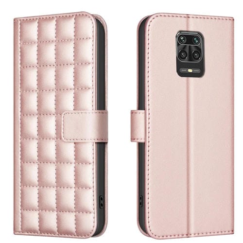 Para Redmi Note 9 Pro Max / 9 Pro / 9S Funda de Cuero con Textura Cuadrada para Teléfono (Oro Rosa)