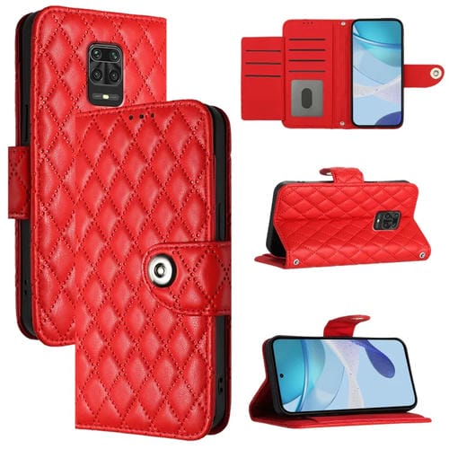 Para Redmi Note 9 Pro / Note 9 Pro Max Funda para Teléfono de Cuero con Tapa con Textura Rómbica y Cordón (Rojo)