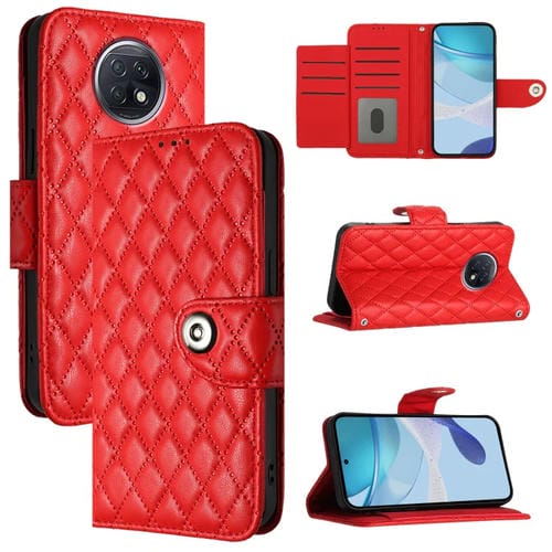 Para Redmi Note 9T Funda de Cuero con Tapa para Teléfono con Textura Rómbica Global y Cordón (Rojo)