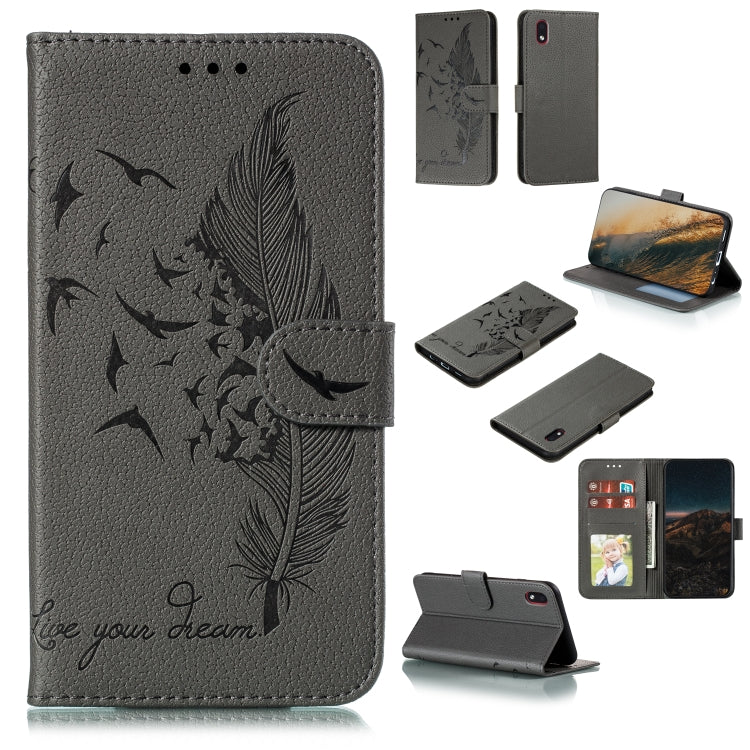 Funda de Cuero para Samsung Galaxy A01 Core con Tapa Horizontal, Billetera, Soporte y Ranuras para Tarjetas (Gris)