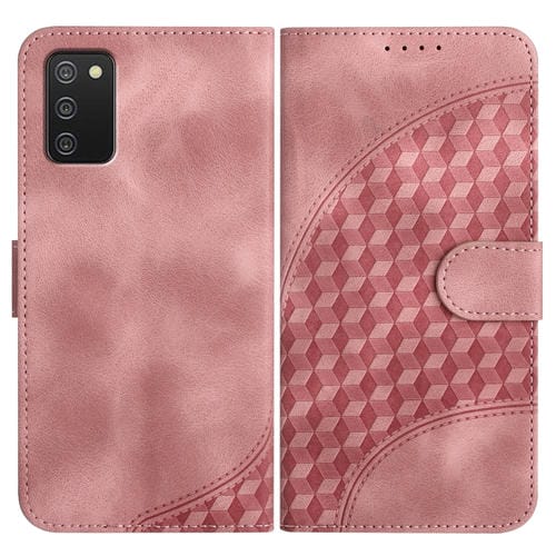 Funda de Cuero Samsung Galaxy A02S Yx0060 Relieve Cabeza de Elefante con Cordón (Rosa)