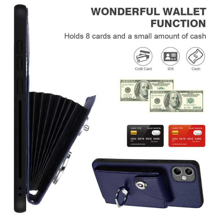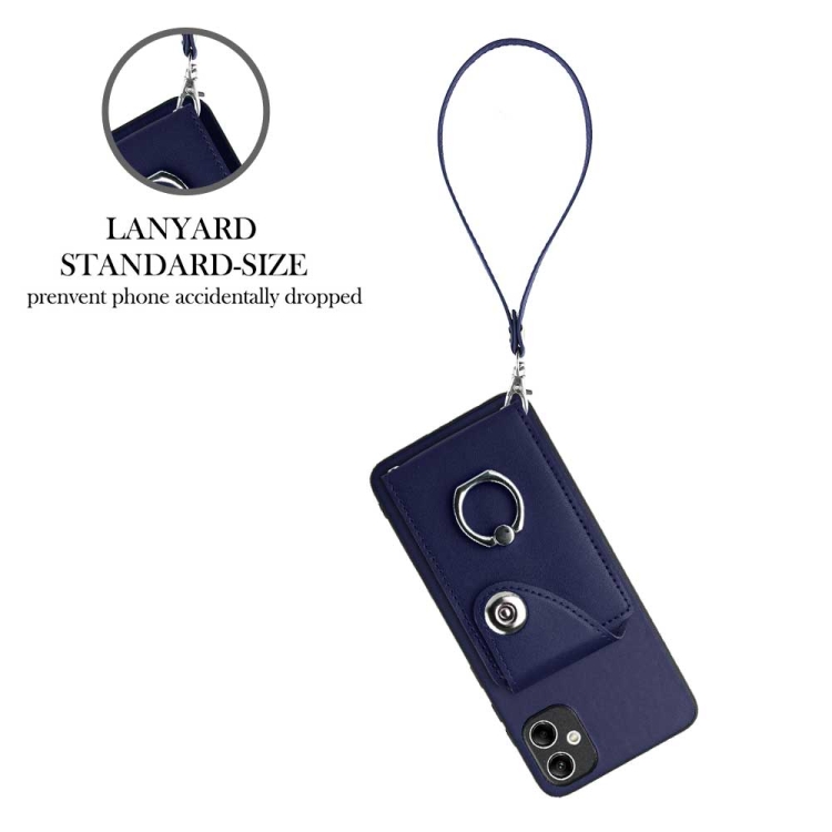 Bolsa para Tarjeta y Soporte para Anillo Funda para Teléfono Samsung Galaxy A04E 4G / M04 4G / F04 4G de PU con Cordón (Azul)