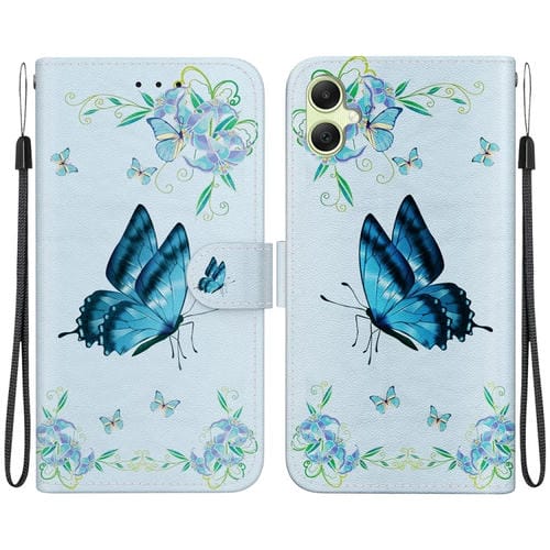 Funda de Cuero Samsung Galaxy A05 con Dibujo Coloreado y Textura de Cristal (Pensamientos Azules)