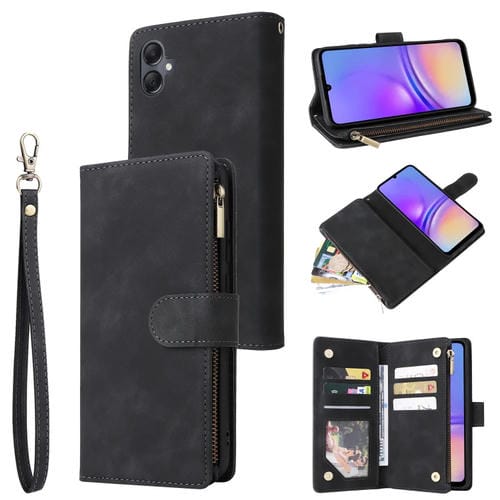 Funda para Teléfono Samsung Galaxy A05 Cuero con Billetera y Cremallera Esmerilada Multifuncional (Negro)