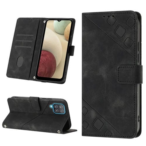 Estuche para Teléfono Samsung Galaxy A12 / M12 Cuero En Relieve con Tacto de Piel (Negro)