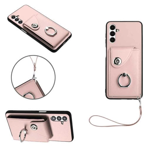 Funda para Teléfono Samsung Galaxy A13 5G A04S de PU con Soporte para Anillo Bolsa para Tarjeta y Cordón (Rosa)