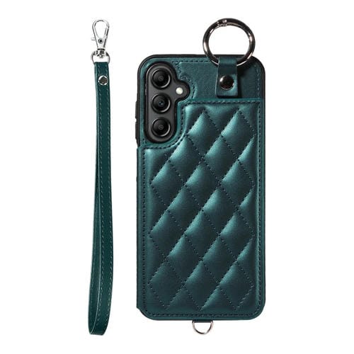 Estuche para Teléfono Samsung Galaxy A14 4G / 5G con Bolsa para Tarjetas Textura Rómbica y Cordón Corto (Verde)