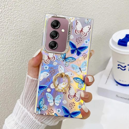Estuche para Teléfono Samsung Galaxy A14 5G con Soporte para Anillo Mariposa Láser (Azul)