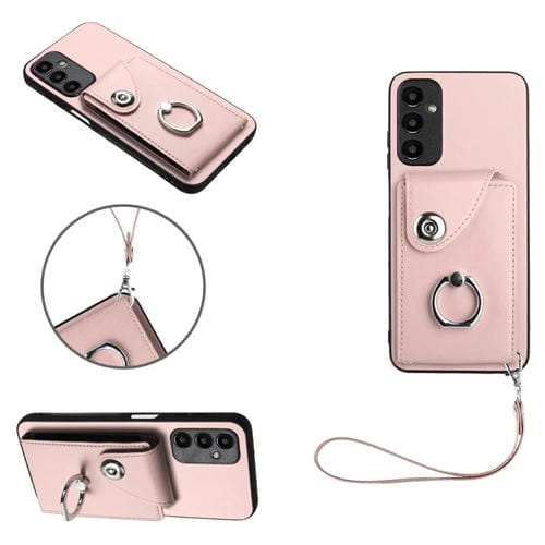 Funda para Teléfono Samsung Galaxy A15 4G Bolsa para Tarjeta Soporte para Anillo con Cordón (Rosa)