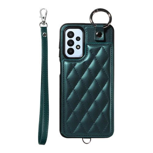 Estuche para Teléfono Samsung Galaxy A23 con Bolsa para Tarjetas Textura Rómbica y Cordón Corto (Verde)